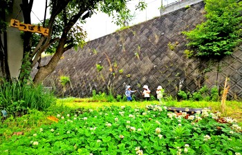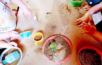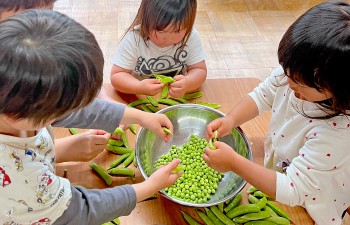 園庭の畑で野菜を育て、それを収穫し食べることの喜びを味わい、