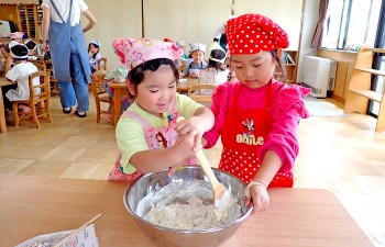 給食はすべて自園で調理し、季節の味覚を取り入れます。